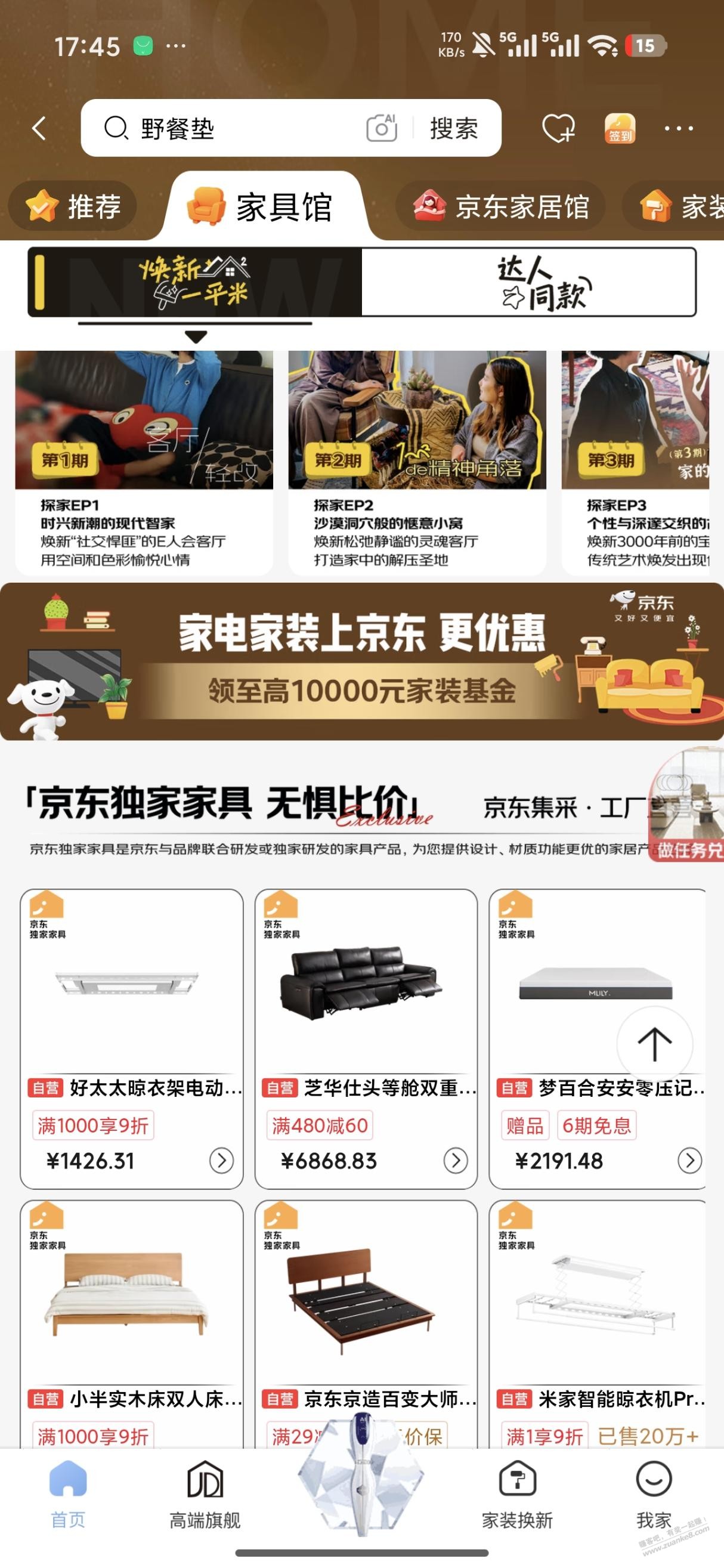 京东APP-首页-推荐-家电家具-家具馆-然后第一张图那里是入口