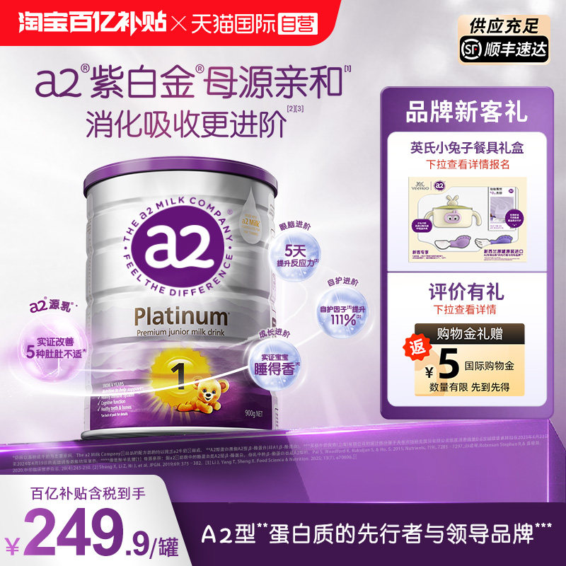 扫码领店铺199-25券点右上角···再点击桃金币找到商品 可抵扣18元金币 拍下含税218.4元 天喵国际自营a2新升级白金版牛奶粉1段900g/ 网页链接/